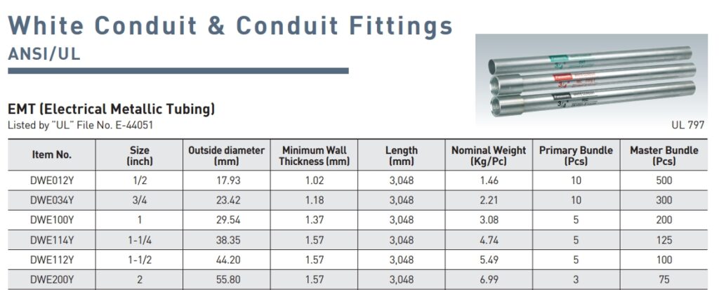 | ชนิด | ท่อชนิด EMT (Electrical Metallic Tubing) |