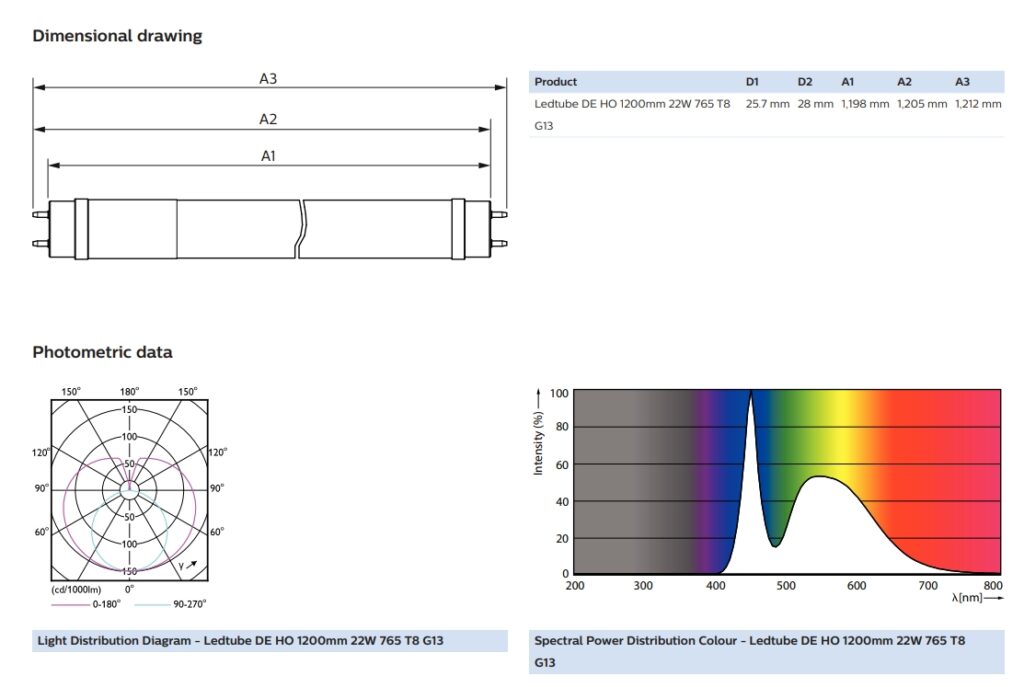 หลอดไฟ LED T8 PHILIPS Led Tube DE HO 22W 765 T8 G13