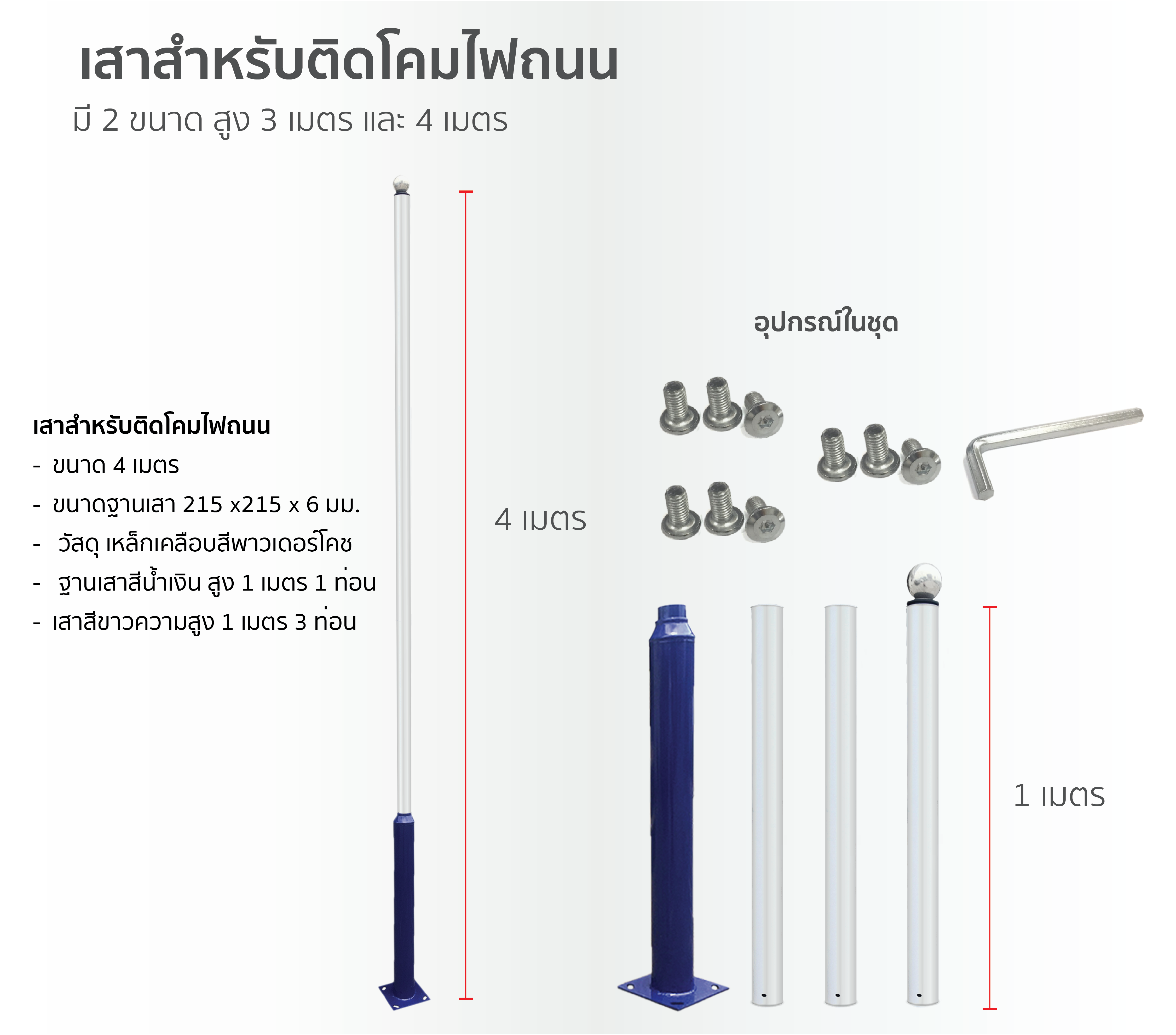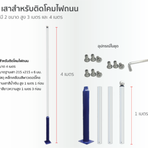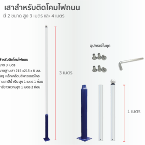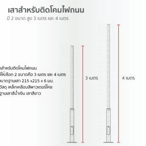 ใช้ได้ทั้งโคมไฟ UFO โคมถนนทั่วไป และกับโคมถนนโซล่าเซลล์ สูง 3 เมตร