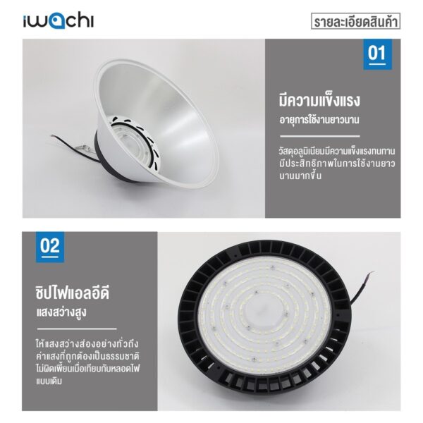 คุณสมบัติ : HIGH BAY LIGHT LED มีหลายขนาดให้เลือก ให้แสงสว่างได้ดี มีประสิทธิภาพให้ความสว่างสูง
