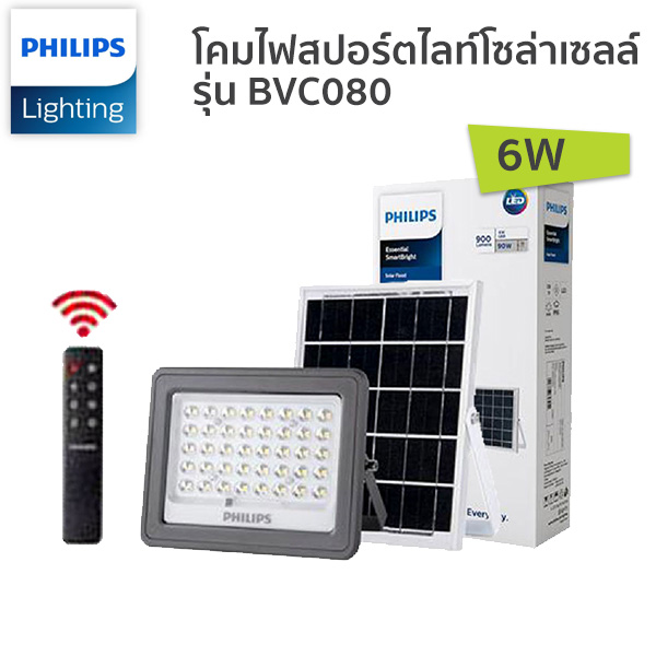 ไฟสปอร์ตไลท์โซล่าเซลล์ LED-Philips- 6W รุ่น BVC080 6/765