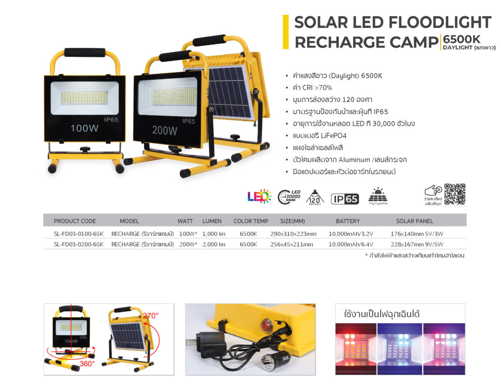 ไฟสปอร์ตไลท์-LIGHTO-Solar Floodlight-Recharge Camp-200W
